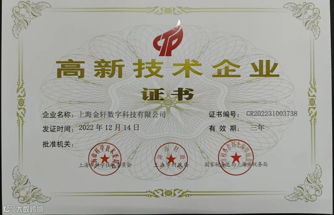 在当今科技创新日新月异的时代,金轩数科(Shanghai Jinxuan Digital Technology Co., Ltd.)荣幸地宣布,公司已正式获得国家级高新技术企业认定。这一殊荣标志着金轩数科在科技领域的杰出表现和不断增强的创新能力得到了国家级权威机构的高度认可。