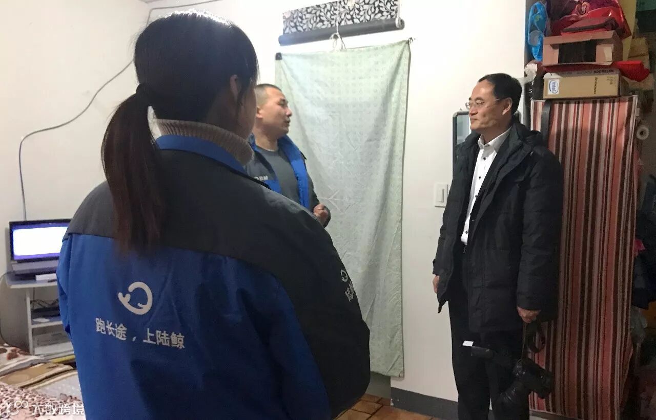 ▲中国海员建设工会副主席张景义来到陆鲸货运司机李明夫妇家中