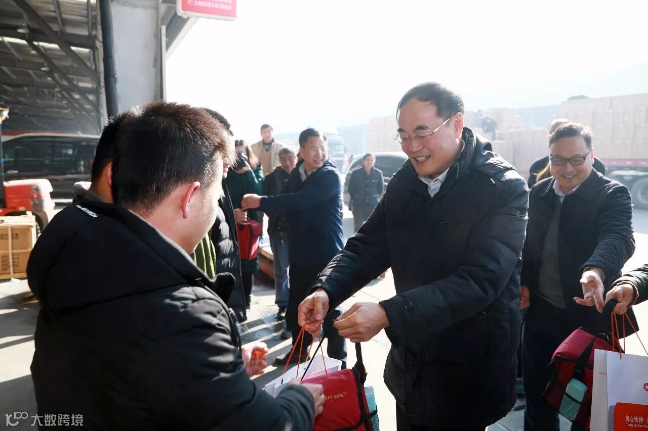 ▲中国海员建设工会慰问团给传化公路港里的卡车司机送上慰问品和祝福