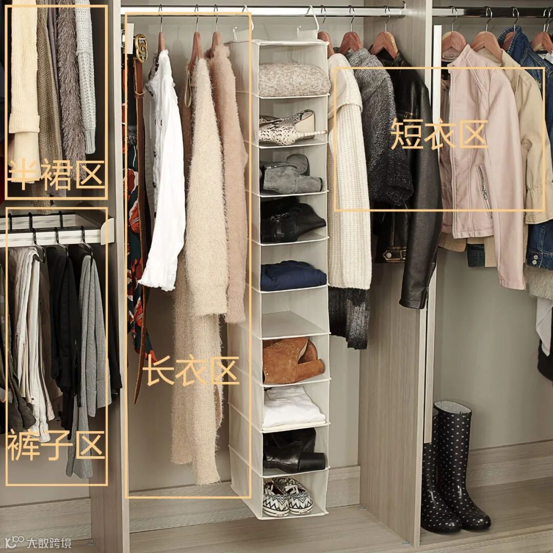 先按照常规的短衣区/裤子区/半裙区/长衣区/归纳后,再给衣橱留20%的空白作为预留的空间,因为衣服换洗和更新是动态使用,这样就避免浪费期间再度混乱整理的时间了。