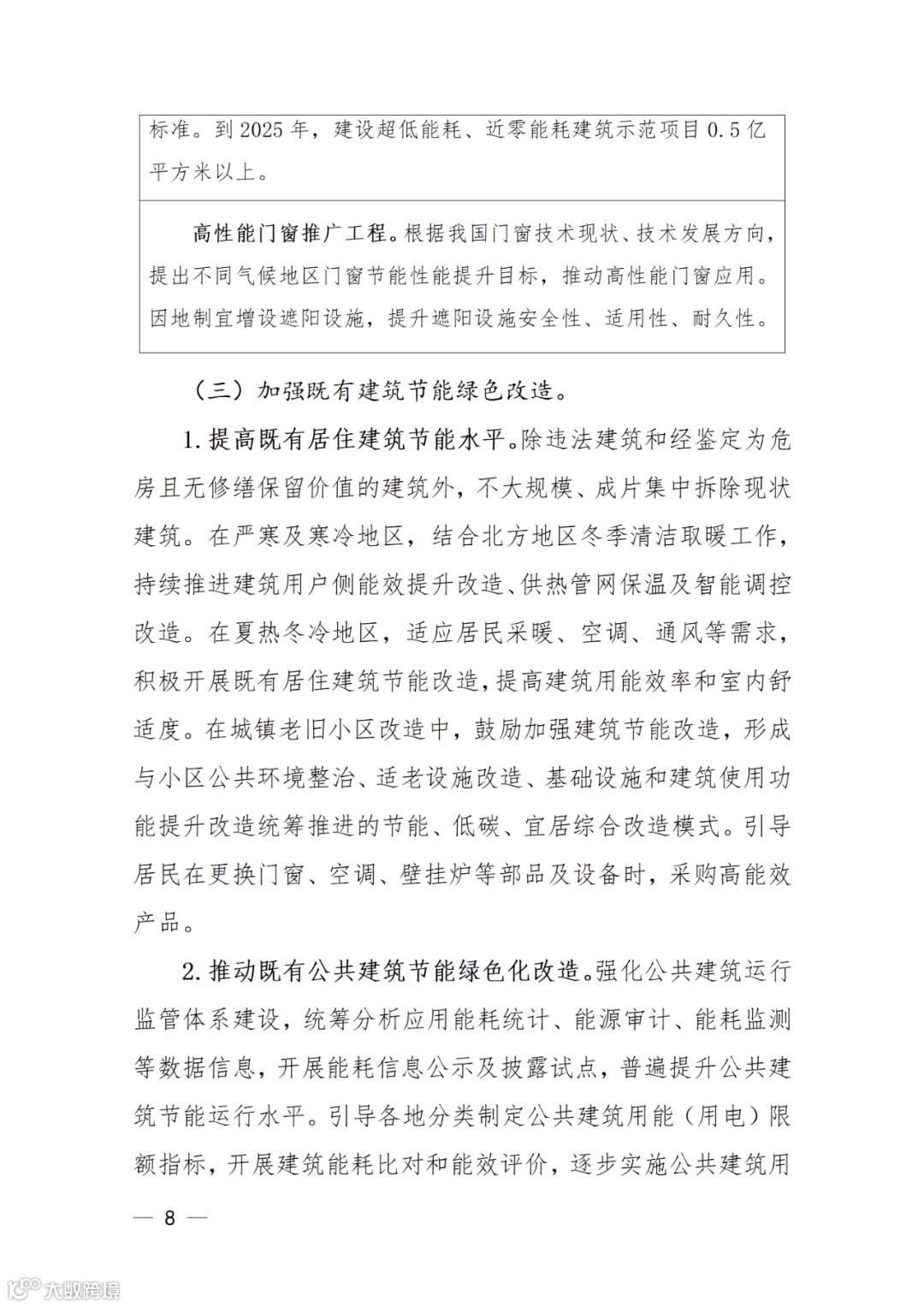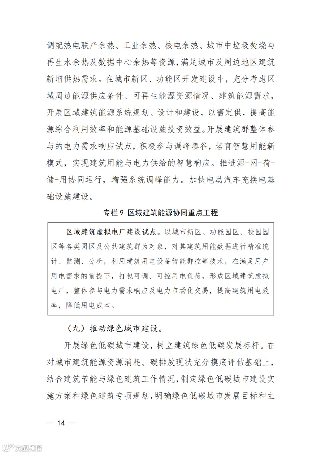 、“光储直柔”新型建筑电力系统建设、建筑-城市-电网能源交互技术研究与应用,发展城市风电、地热、低品位余热等清洁能源建筑高效利用技术;后者则提出具体发展目标,到2025年,