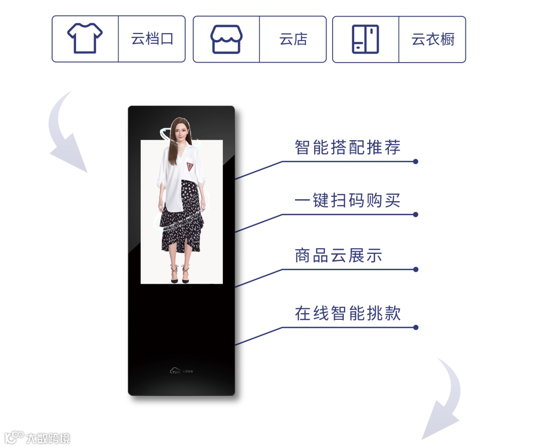 为云店、云衣橱双向赋能,懂衣团队依托5G大数据、人工智能等先进技术自主研发智能云镜,3D真人模型模拟试衣体验,更有AI智能穿搭推荐一键购买,将这种全新的体验和交互模式引入到服装终端门店,引爆流量带来商家与消费者的快速链接,让流量转化为“留”量,赋予传统服装行业“新零售”场景解决方案。