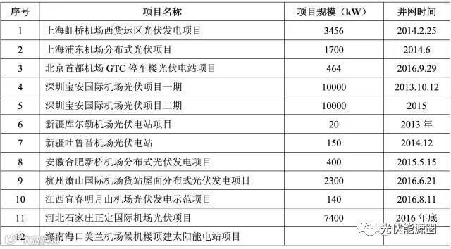 表 1:国内分布式光伏机场项目
