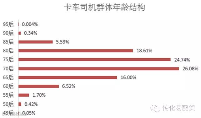 60后占比仍有22.52%,这也是一个很大的数字。但是我们看到60后还是以65后为主。这个群体是公路运输最宝贵的资源。