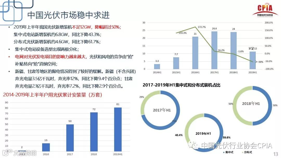 2019年7月25日上午,“光伏行业2019年上半年发展回顾与下半年形势展望研讨会”上,中国光伏行业协会副理事长兼秘书长王勃华对2019年上半年我国光伏产业发展情况做了精彩回顾并对下半年的发展形势做出了展望。