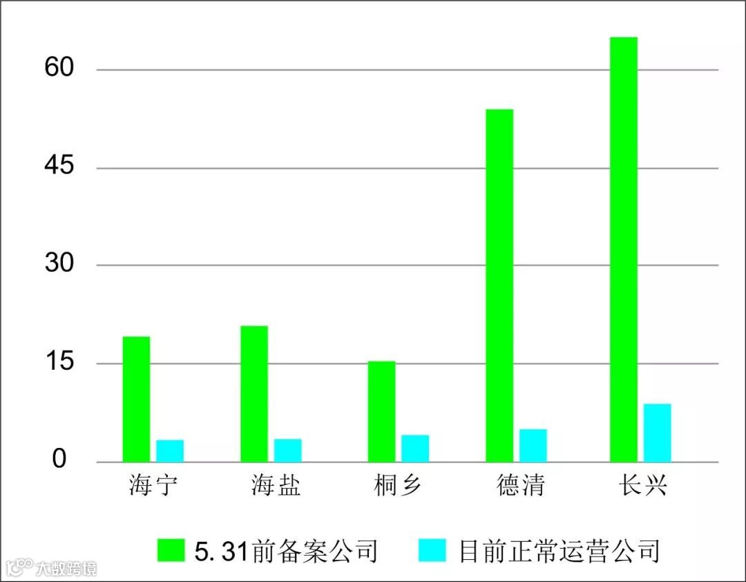 从上图可以看到,5.31新政出来前,嘉兴海宁海盐桐乡等地,备案的光伏公司分别就有近20家之多,而政策出来之后,还在正常运营的光伏公司不足三四;德清长兴等地差距更为明显,新政之前有60家之多,而之后才不到10家。