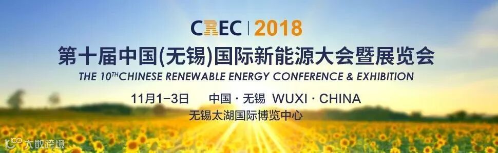 2018年11月1日至3日,国家能源局、中国能源研究会指导,中国贸促会、江苏省人民政府主办,无锡市人民政府等承办的“第十届中国(无锡)国际新能源大会暨展览会(CREC2018)”在无锡太湖国际博览中心和无锡君来世尊酒店举行。