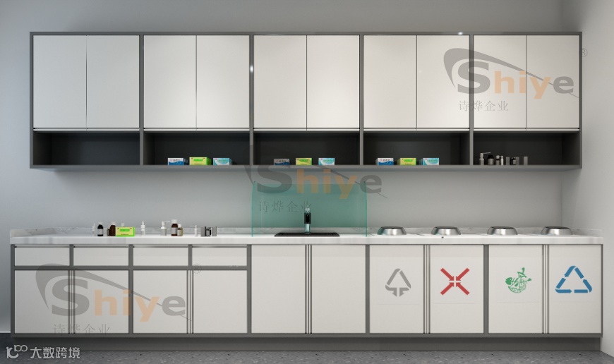 治疗处置室采用模块化组合的方式功能紧凑、保障物品与药品快速制备,处置台、医疗与非医疗废物桶、手卫生设施、水池区域划分清晰,一体化医用家具满足操作便捷、安全易清洁、经济耐用等多重性设计标准。