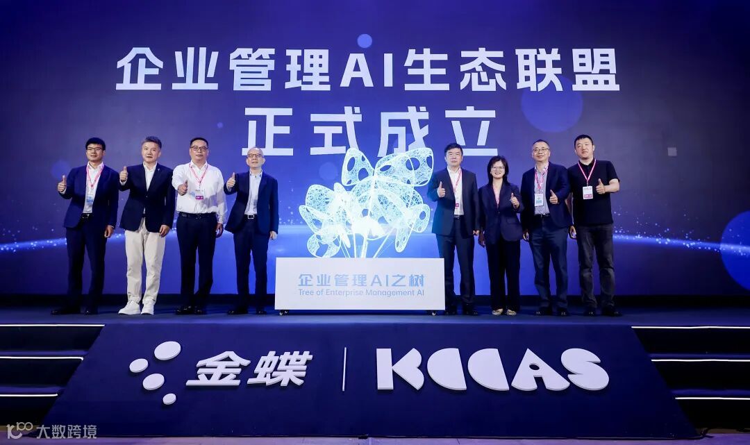 面对人工智能在企业级市场的深化应用,单一厂商难以兼具行业沉淀、技术研发投入与实施服务覆盖的全链路能力,产、学、研、用协同创新成为破局关键。金蝶不仅积极推动“AI普及行动”,更在本届峰会发起了“企业管理AI生态联盟”,与来自上海国家会计学院、通威股份、建发房产、软通集团、中电金信、青岛雨诺的代表,共同种下了一棵“企业管理AI”之树。