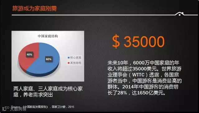 第二,中国人旅游,很大一部分是群体出行,一个家庭或者和朋友、同事、同学一起出行,途家的65%的订单是家庭订单,群体出行旅游对房间的要求很特殊,酒店式的三十五平米的房间无法满足他们的食宿要求。