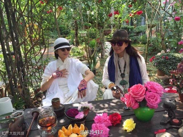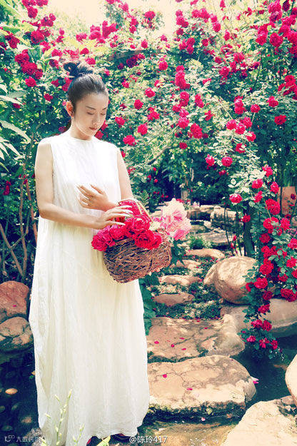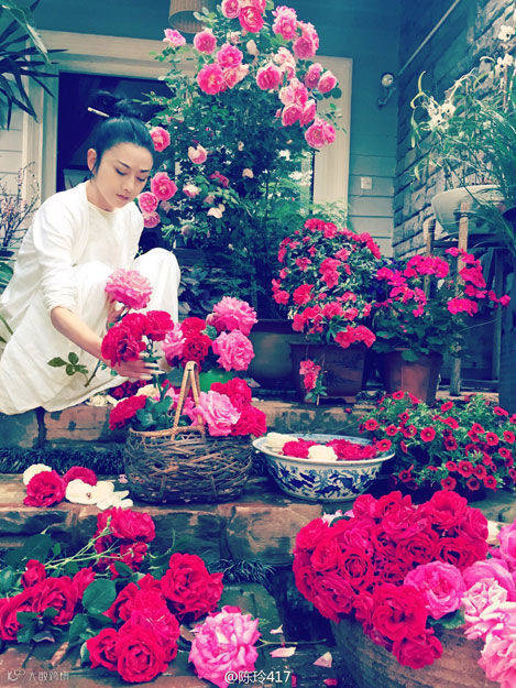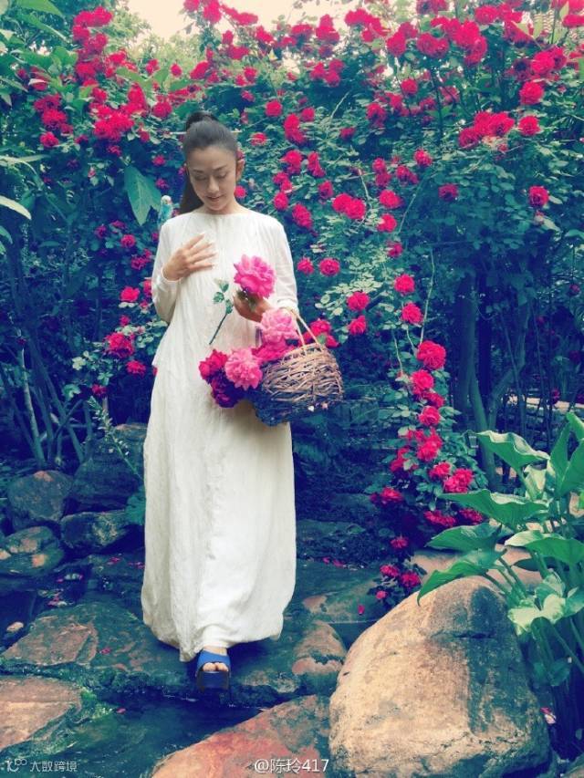 另一组杨丽萍在自家花园的照片,57岁的她穿着白色长裙,盘起头发置身花海之间,飘飘然立于繁花丛中,好似粉嫩少女一般,画面绝美仙气十足。不由得让人感叹,岁月似乎将她遗忘了,越活越年轻,越老越精致。