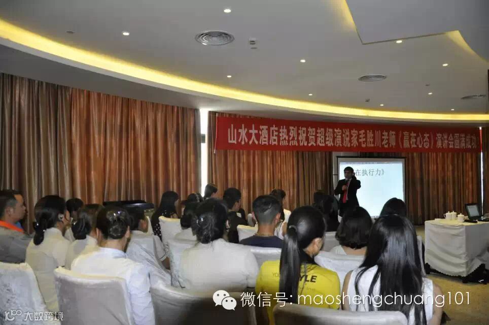 2015年5月26日,超级演说家毛胜川老师玉溪山水大酒店《赢在心态》企业超级内训圆满取得成功!课程分别从工作的意义,改变心态