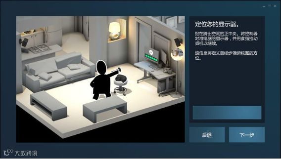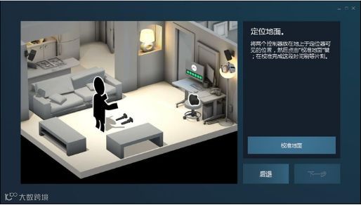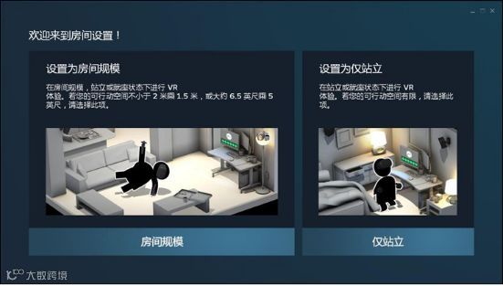 Steam VR控制面板可以显示各个组件的工作状态(上图左一,显示正常运行);房间设置: