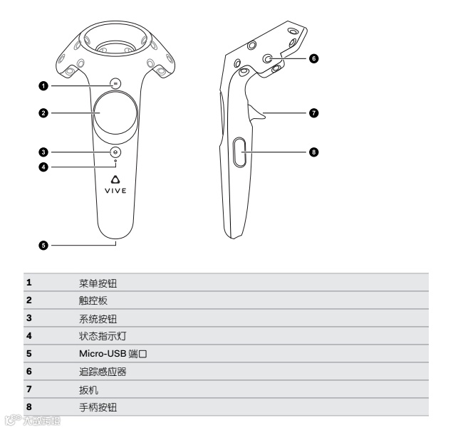 Vive的无线控制器手柄需要使用Micro USB数据线进行充电和更新固件。