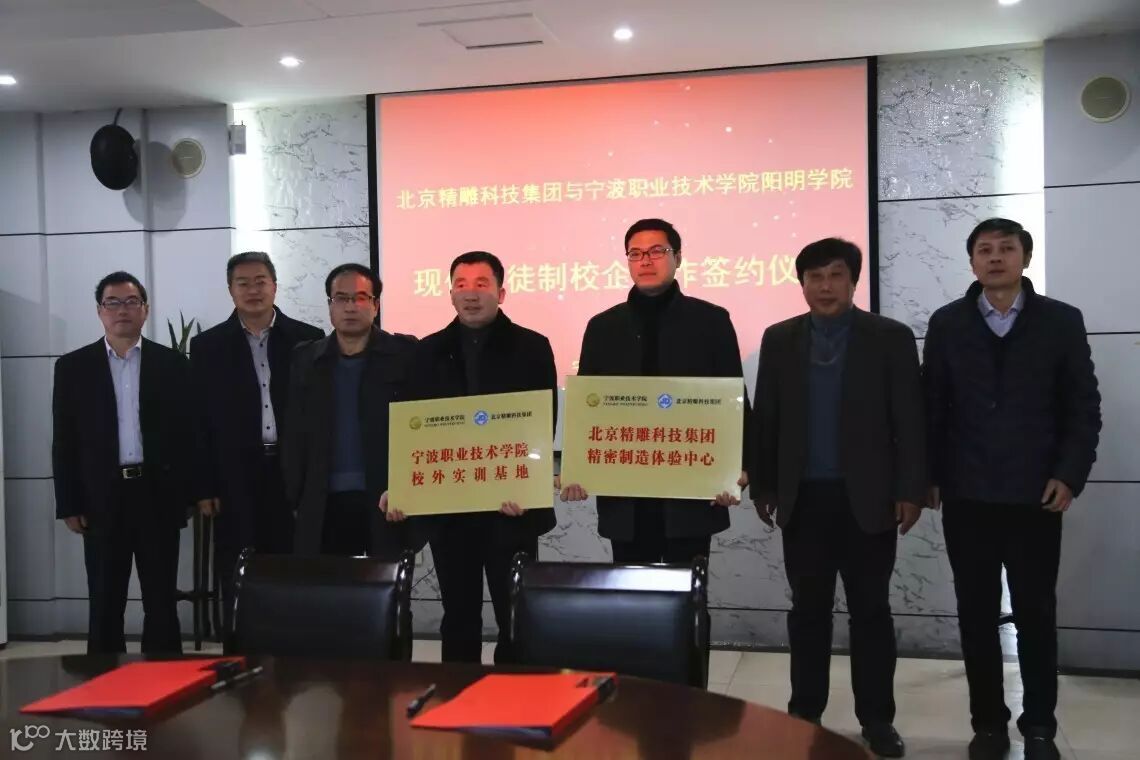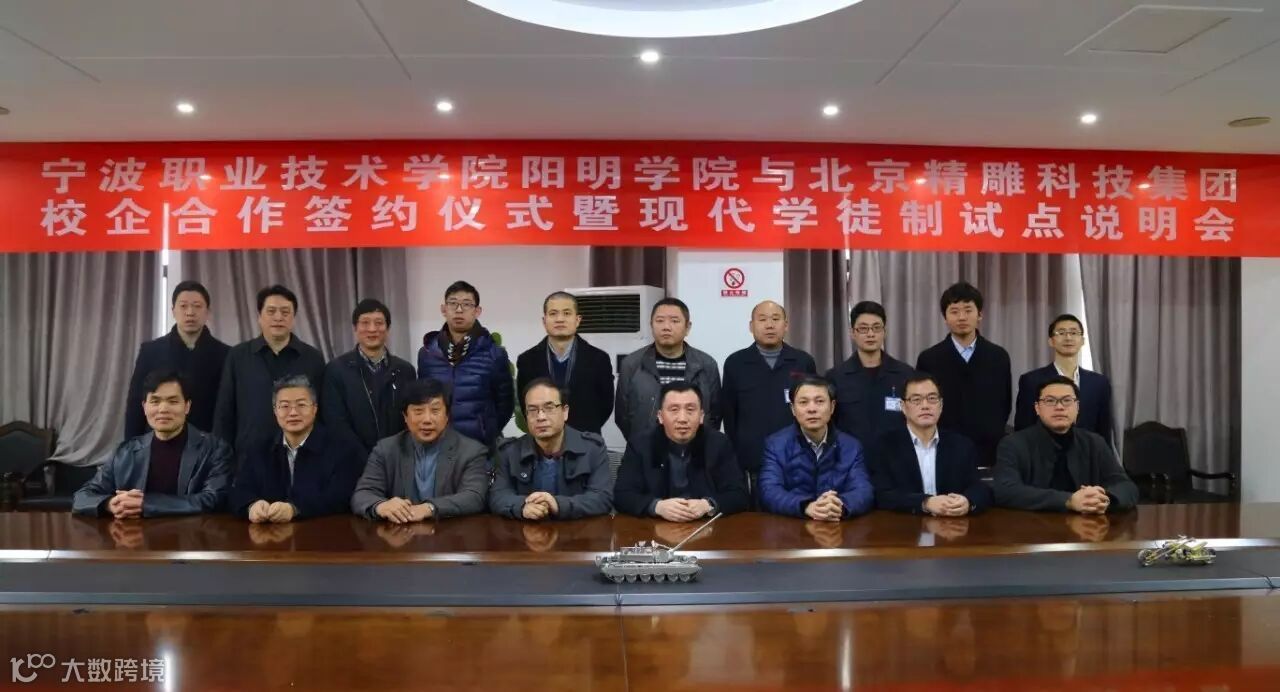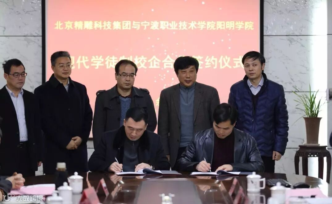 2017年1月17日,宁波职业技术学院与北京精雕集团在阳明学院隆重举行了校企合作签约仪式暨现代学徒制试点说明会。
