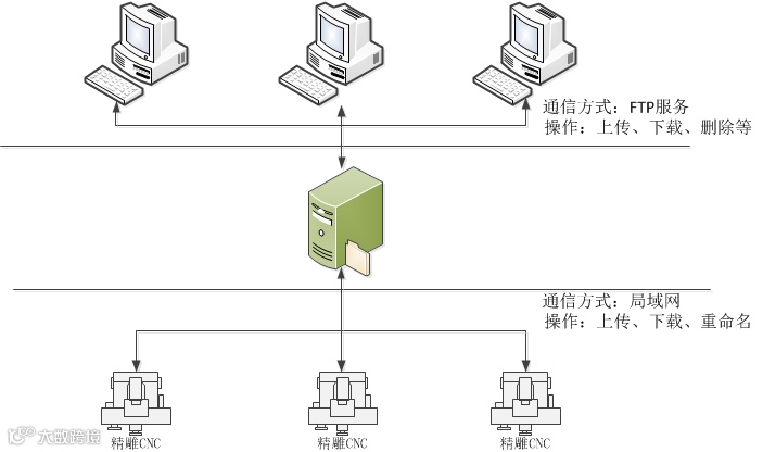 精雕DNC系统在软件体系架构设置上考虑到适应客户的定制化需求,采用了六层结构,使得精雕DNC系统具有良好的可扩展性和兼容性,对一些定制化的需求,多层模式的系统架构更加容易便捷地增加和删除功能。