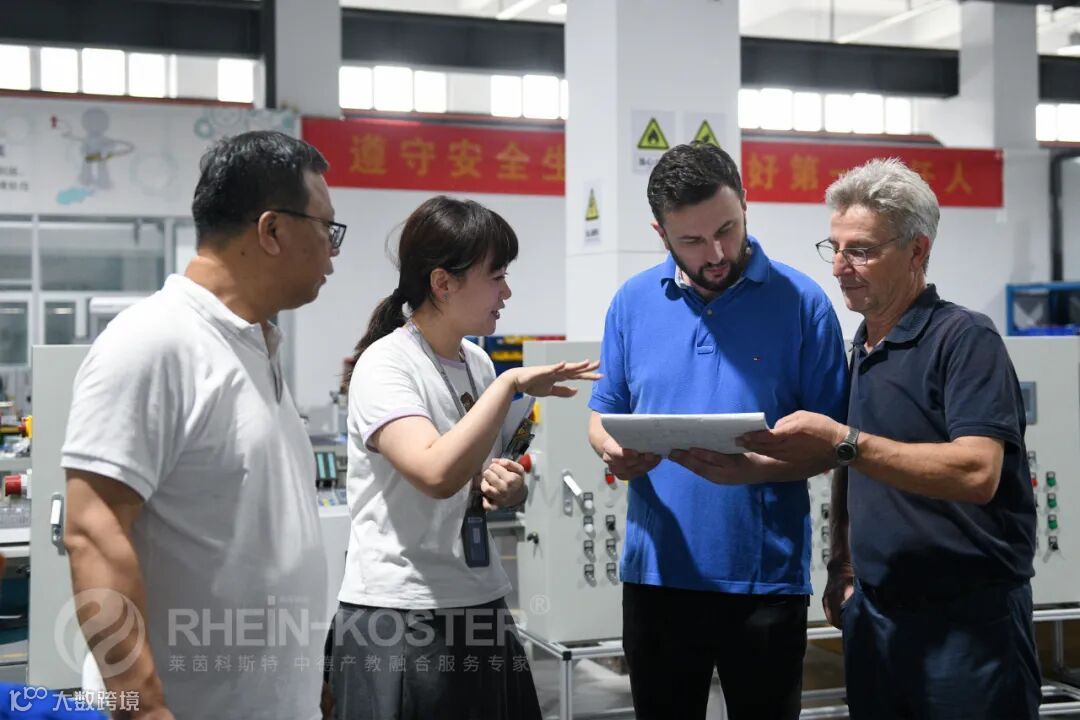 2025年8月4日-8日,莱茵科斯特"赴德培训就业一体化项目"开班前夕,德国巴伐利亚州肯普滕州立第一职业学院机电一体化专业高级教师Christian Pownuk先生、金属专业高级教师Jürgen Mair先生专程来到中国,与莱茵科斯特培训师团队开展了为期一周的深度教学研讨与指导工作。此次交流活动聚焦于项目学员在国内两年专业课程计划的优化完善,旨在确保学员赴德后能够无缝衔接德国双元制职业教育体系,顺利实现德国就业。
