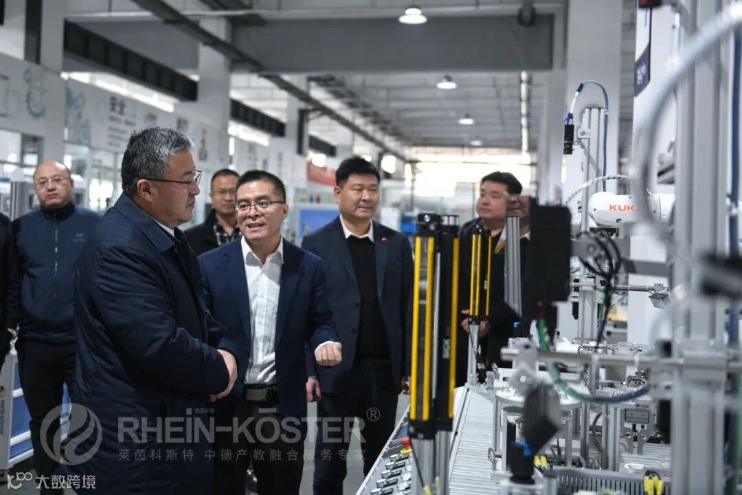 2025年2月22日上午,黑龙江省大庆经济技术开发区管理委员会书记、主任董圣慧,黑龙江商业职业学院党委委员、副院长黄志刚等一行5人到中德智能制造产教融合示范基地参观考察。莱茵科斯特副总经理陈朋、创新项目事业部总经理王洪磊等公司领导接待并介绍相关情况。