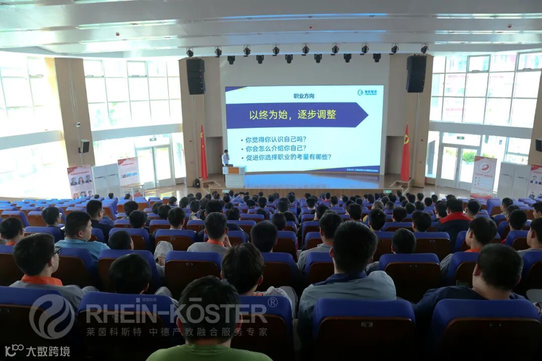 为更好帮助毕业生了解当前就业形势,拓宽就业渠道,2023年5月22日,由莱茵科斯特举办的智能智匠职业规划宣讲会在中德智能制造产教融合示范基地报告厅举行。来自淄博职业学院、平度市技师学院、威海职业学院等8所院校的近200名准毕业生参加此次宣讲会。