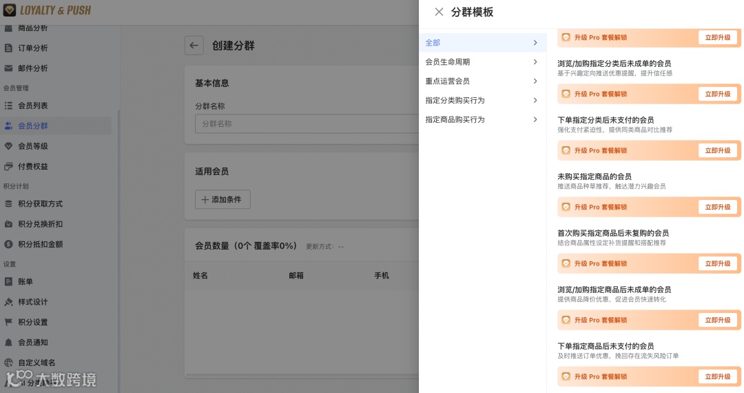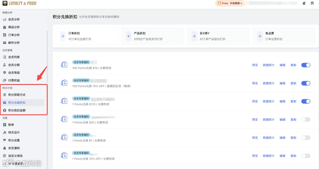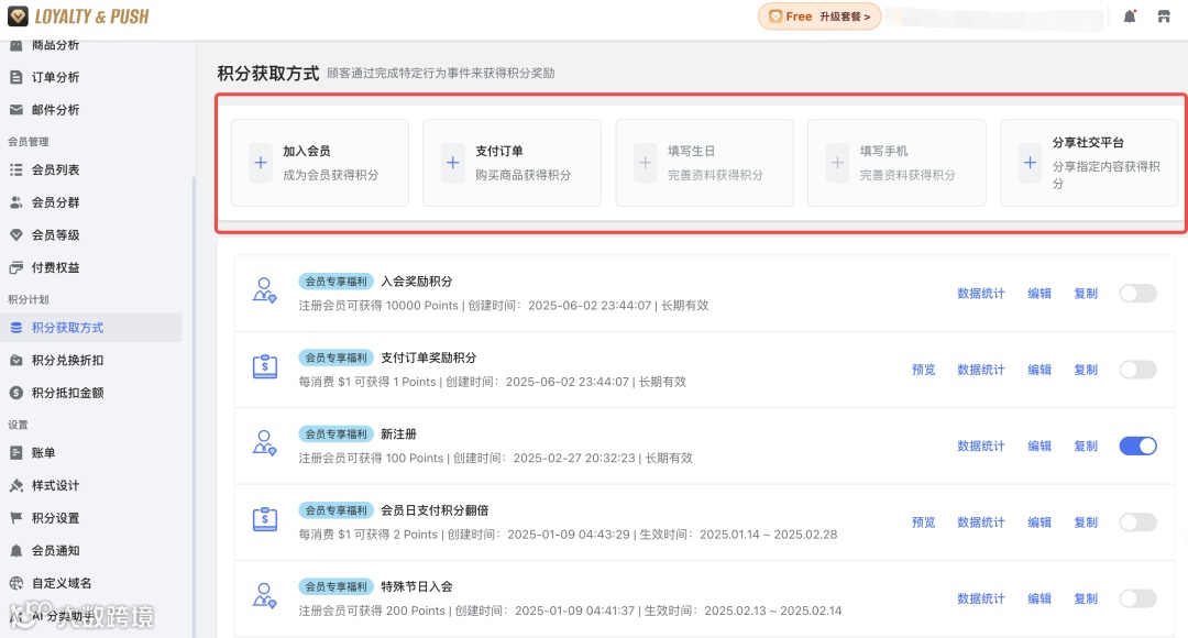 - ⓷ 数据监控优化:通过【数据分析】模块实时查看会员转化、积分使用、邮件打开率等关键指标,动态优化权益与策略。