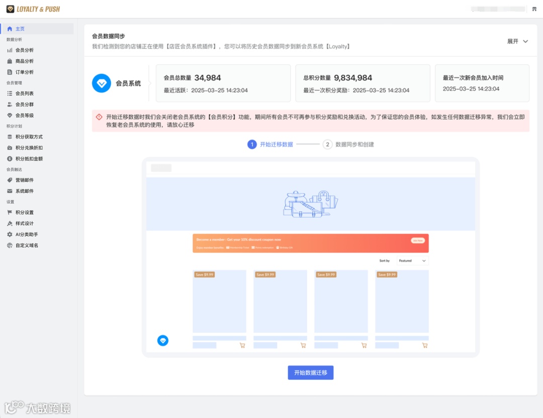 使用旧会员插件或第三方系统的商家,可通过【会员数据同步】功能迁移数据,或下载Excel模板导入会员邮箱与积分。