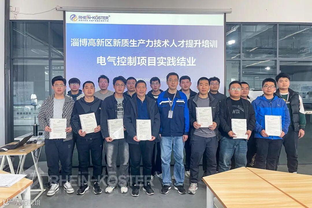 为推动淄博市企业产业转型升级,帮助企业培育高素质技术技能人才队伍,持续培养大批卓越工程师,近日,淄博高新区工信局联合莱茵科斯特在中德智能制造产教融合示范基地开展淄博高新区2024年度企业新质生产力技术技能人才提升培训。此次培训共开设59个班次,以理实一体化、项目式课题、全天脱产的方式授课,设有工业机器人工作站系统集成、西门子博途编程技术(1200/1500)、S7-200SMART编程技术、工业互联网边缘设备的部署及应用、电气控制项目实践、钳工操作技术、数控操作与生产技术、产线数字化设计与仿真(级)等8个培训课程。