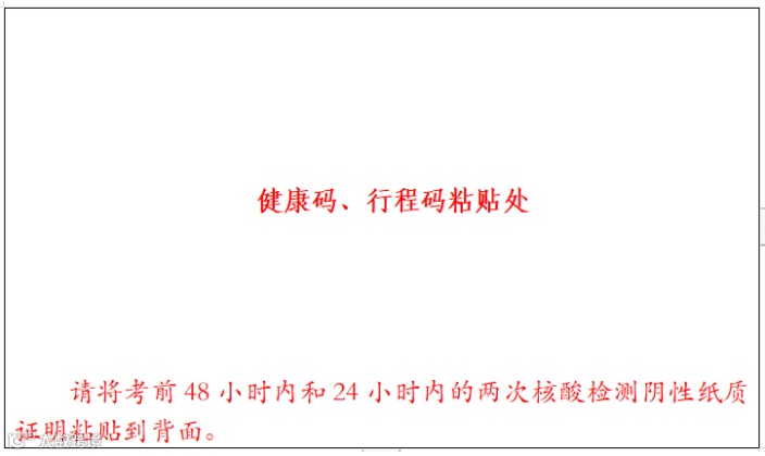 注意:《健康承诺书》需按疫情防控要求打印并粘贴考生健康码、行程码、48小时内和24小时内核酸检测阴性证明。