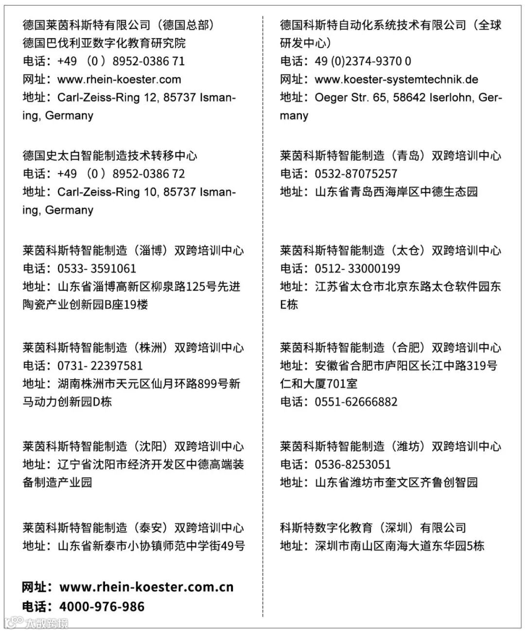 德国莱茵科斯特有限公司始于1986年,总部位于慕尼黑,致力于机电、自动化、智能制造领域的高端应用型人才培养体系的研发、推广与实施。