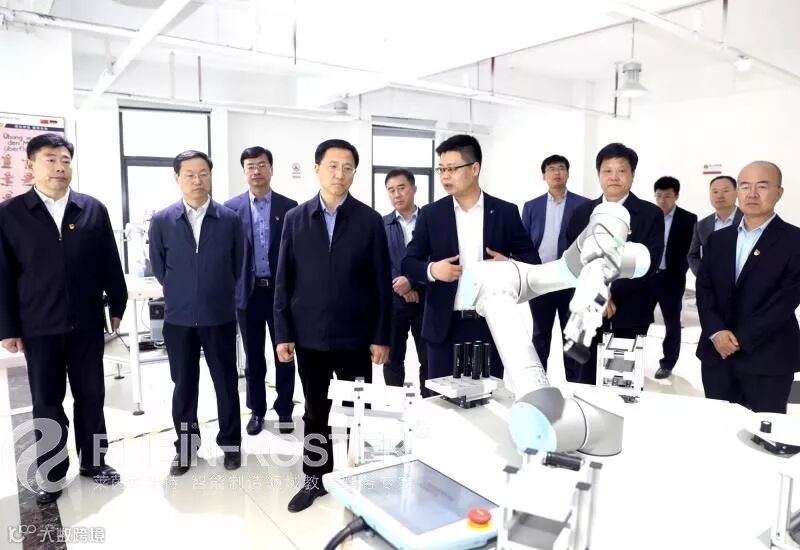 在智能协作机器人中心,工程师向惠新安书记演示了UR协作机器人的工作方式,详细介绍了协作机器人在工业领域的用途,惠新安书记充分肯定了协作机器人在工业领域内的应用。