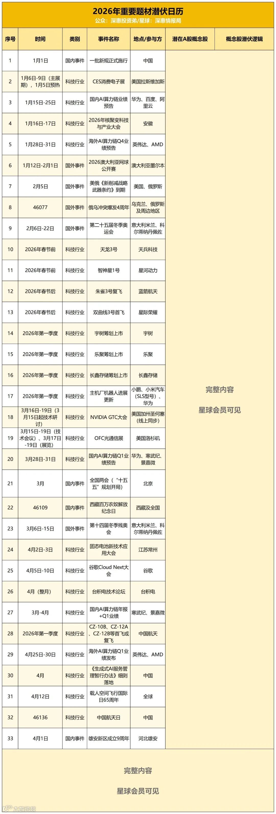 知识星球核武器库【2026重要题材埋伏日历】、【重要产业链】持续更新上线,全面备战2026!