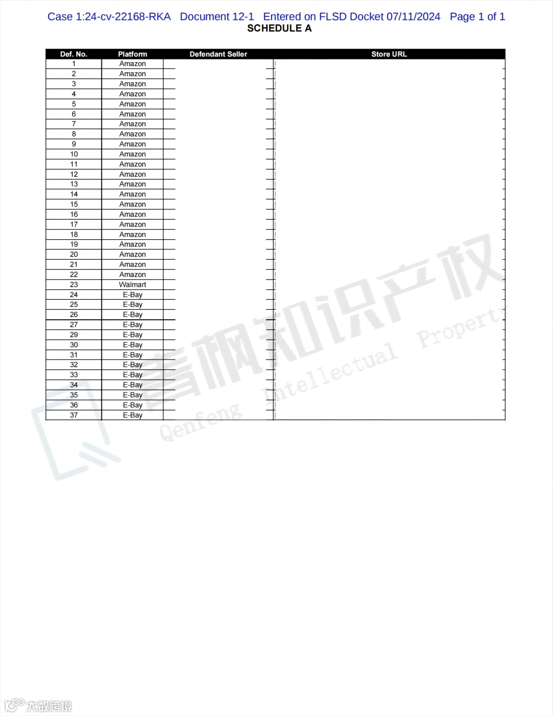 被告名单共计37人,主要分布于亚马逊、eBay和沃尔玛平台。