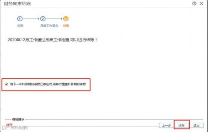 (注意:如出现结转后的期初余额不平衡情况,请用新年度日期登录,基础设置- 科目-科目对照 将 2025年及 2026年的差异科目一一对照,对照完成,取消 2025年 12 月结账,重新结账,结账最后一页,打钩:当下一年期初余额已存在时, 结转时覆盖科目期初余额)