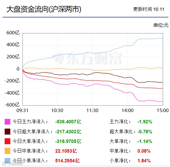 (2)A股盘面:A股续创15连阳纪录,主力净流出536.4亿,下午散户跑步进场、机构加速离场,两市成交2.8万亿,成交缩量2%。