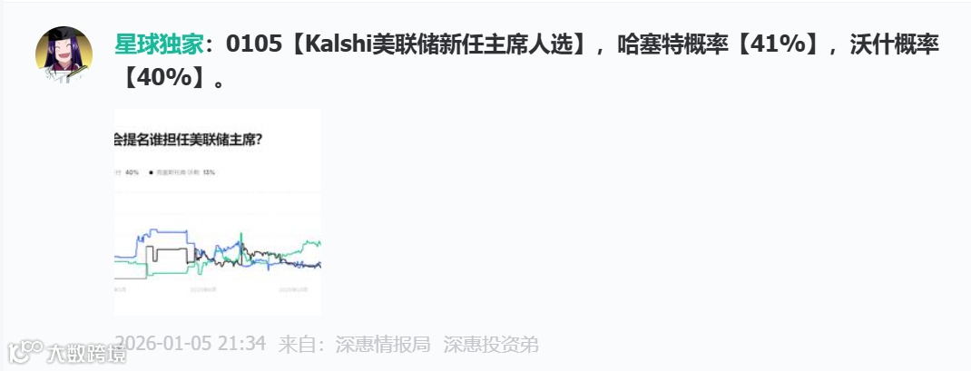 (1)新任美联储主席候选人:竞争白热化,哈塞特仅领先1%。