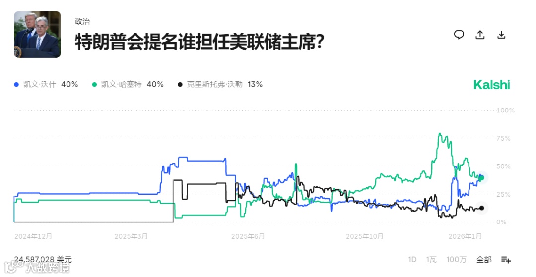(1)新任美联储主席候选人:竞争白热化,哈塞特与沃勒的概率均为【40%】。