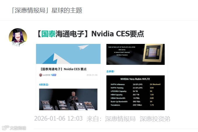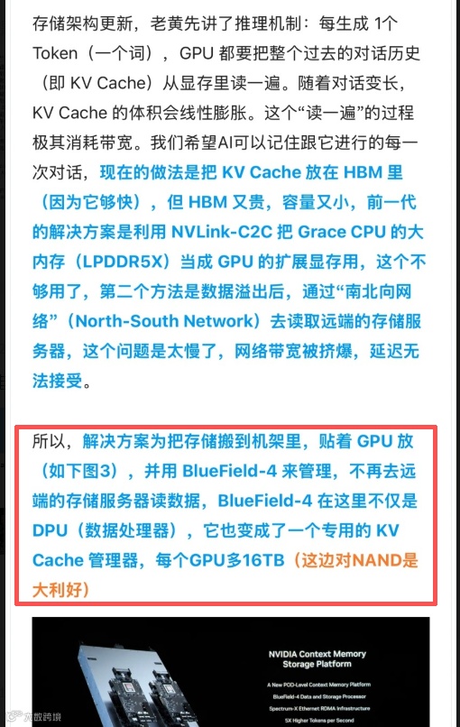 (3)Nvidia CES要点:每个GPU多16TB,对NAND是大利好,博主认为这是引爆美股存储概念【闪迪】【美光】的根本原因。另外,新方案可采用无需水冷机冷却,利空【液冷】。