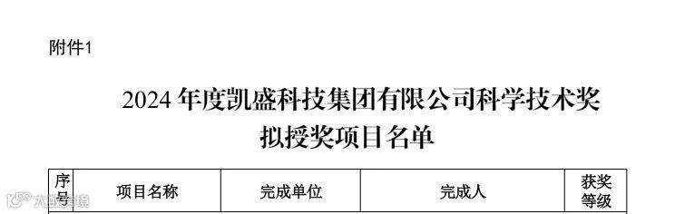 获评凯盛科技集团有限公司科学技术奖技术进步奖一等奖