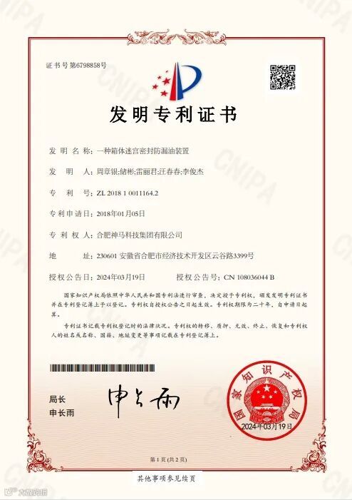 近日,从国家知识产权局获悉,合肥神马再获3项发明专利授权,分别是:“一种箱体迷宫密封防漏油装置”、“一种绞合铜导体在线退火装置”、“框绞机线盘夹紧专用自锁缸”。
