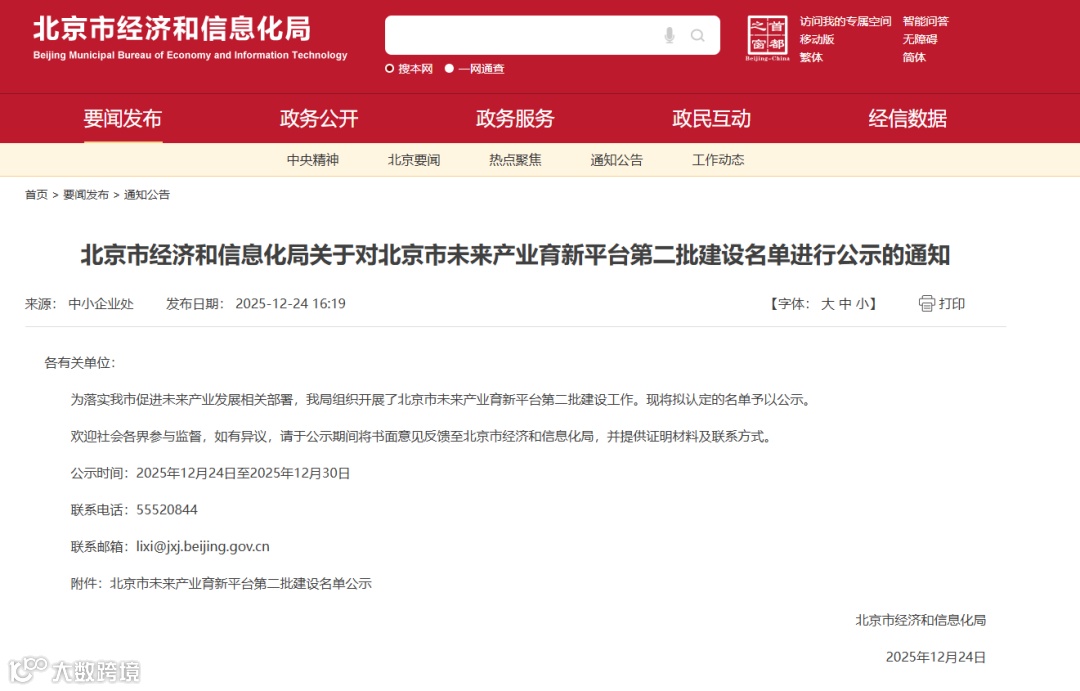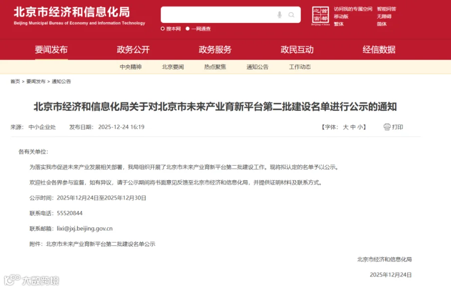 1、北京市经济和信息化局关于对北京市2025年第三季度专精特新中小企业名单进行公告的通知