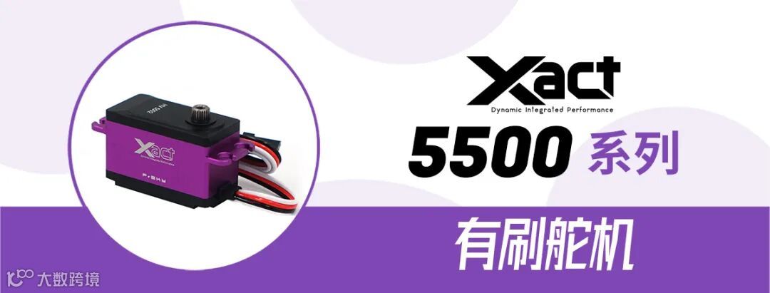 Xact系列的有刷舵机采用CNC加工的铝制金属外壳,坚固且散热快。同时,内部采用金属联动齿轮,在大扭力工作下更加经久耐用。Xact系列舵机支持最大8.4V高压工作并提供多种配置,在不同的工作电压环境下,输出对应的舵机速度以及扭力表现。Xact系列舵机型号齐全,为不同机型的需求提供了多样选择。