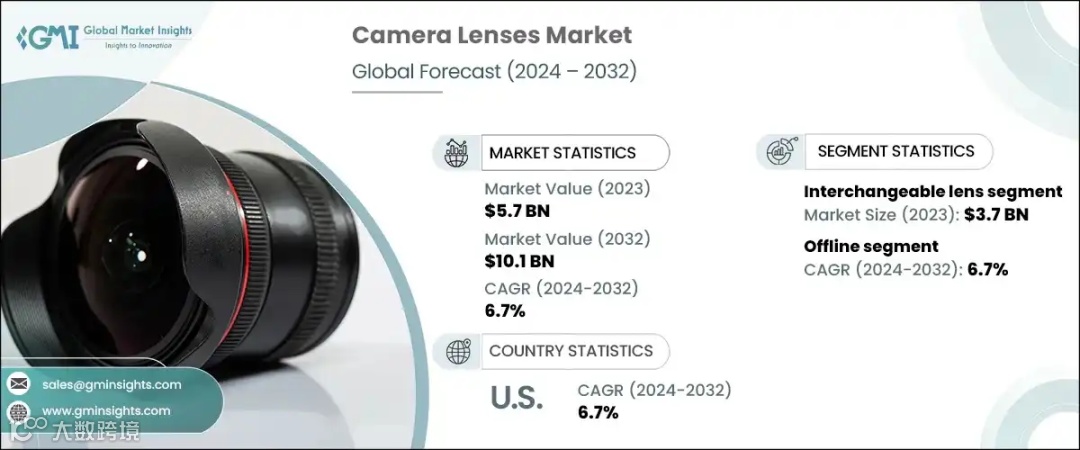 2023年全球相机镜头市场规模为57亿美元,预计2024年至2032年的复合年增长率为6.7%。随着社交媒体、内容创作和在线平台的持续发展,对高质量视觉内容的需求日益增长。