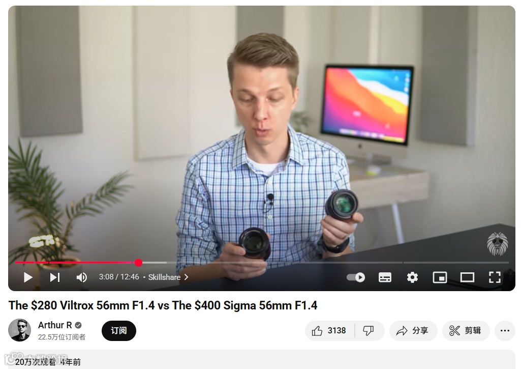 其中Arthur R一条通过12分钟深度评测对比适马与唯卓仕镜头的视频,直观展示成像质量差异,单条视频播放量超20万次,评论区超3000点赞,成功塑造“高性价比技术派”形象。