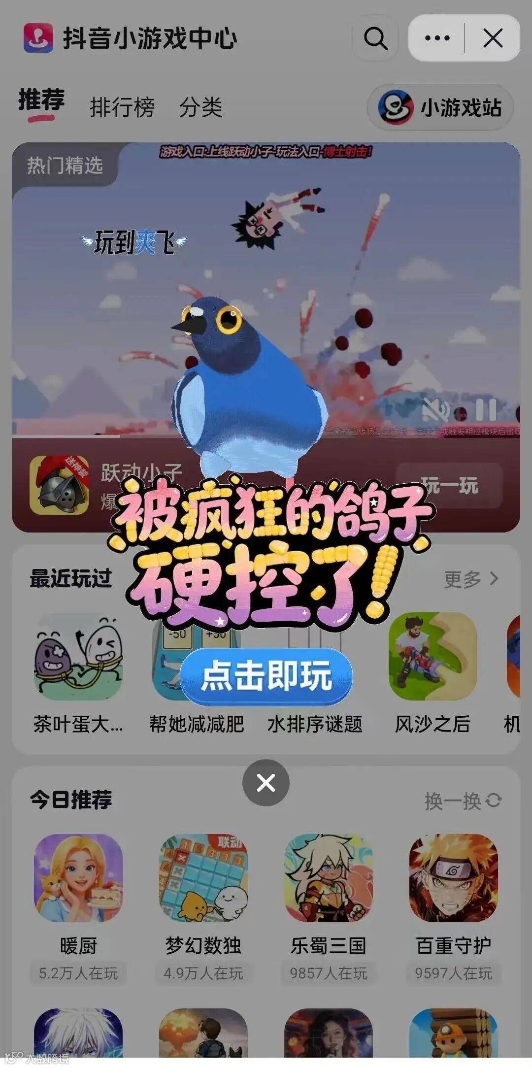 二是魔性内容的植入,每当玩家通关,鸽子便会自动跳起“雷霆舞姿”,扭头、甩尾、摆翅膀的连贯动作搭配魔性音效,不仅成为通关后的正向反馈,更自带社交传播属性,让“疯狂鸽子跳舞”成为抖音热梗,激发用户自发分享二创,形成UGC传播浪潮;