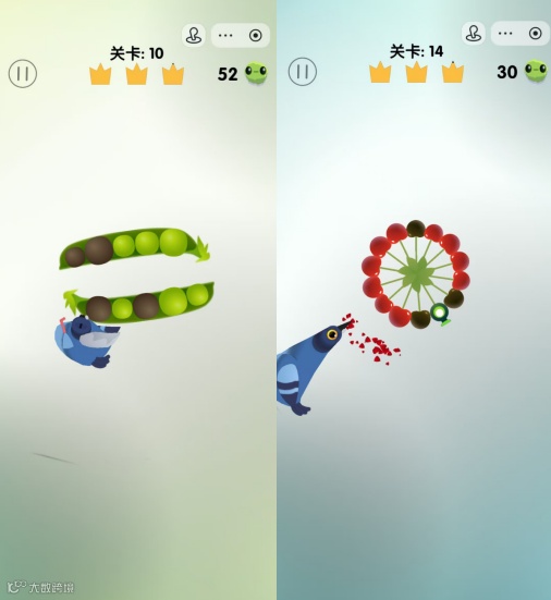 该产品能在抖音火爆,罗斯基认为是玩法逻辑清晰易懂,延续了经典《见缝插针》类游戏的轻操作内核,却将核心元素进行了趣味重构:原本的转盘替换为玉米、豌豆、西瓜、石榴等一系列贴近生活的食物道具,“针”则升级为可爱的鸽子,玩家需在限时内操控鸽子啄食食物,同时规避石头等障碍物完成闯关,收集过程中获得的虫子可兑换多样皮肤与新造型,限时通关对应着获取皇冠数,三个皇冠是满分,给予玩家持续目标感。