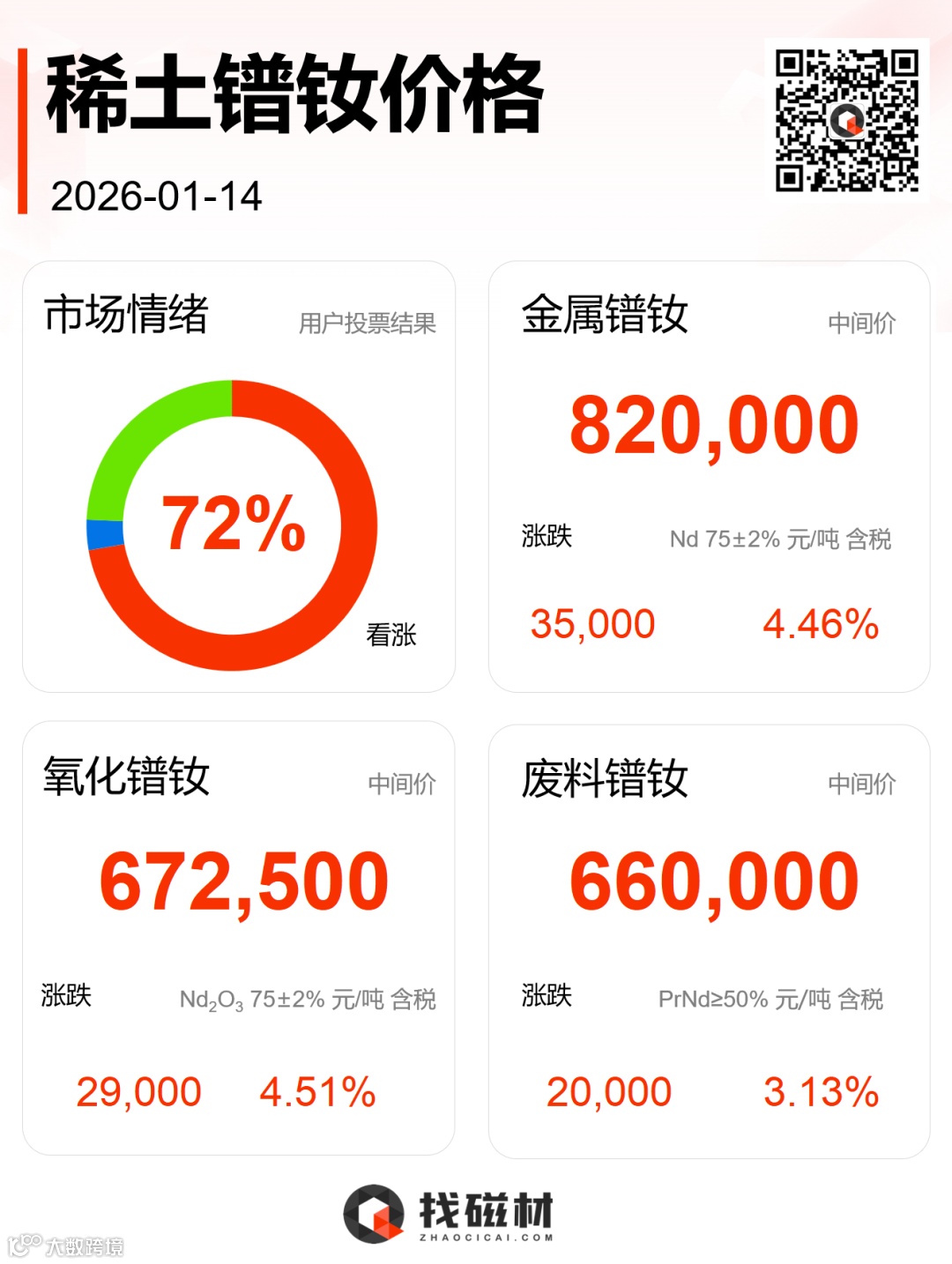 导读:每日11:00发布,涵盖氧化镨钕、金属镨钕、废料镨钕市场价格