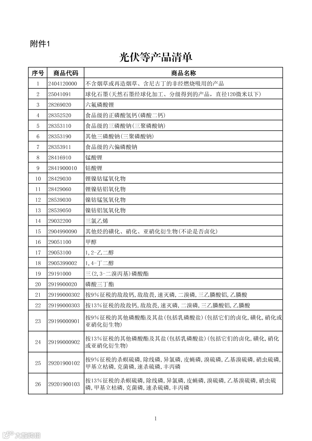 - 光伏产品:自2026年4月1日起全面取消增值税出口退税,涉及产品达249项;