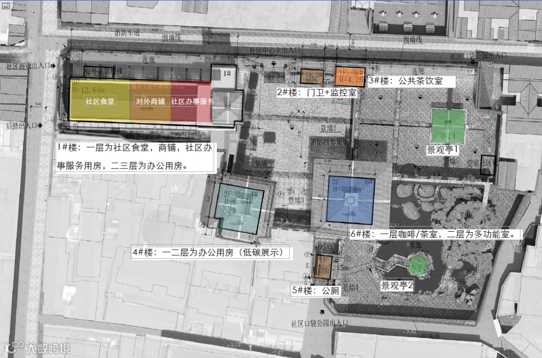 根据建筑空间特点,植入新功能。将原有疗养空间改造为商业、社区、活动等,兼顾办公、文化展示与社交需求;临街建筑可设为茶室、咖啡馆,提升街区活力。