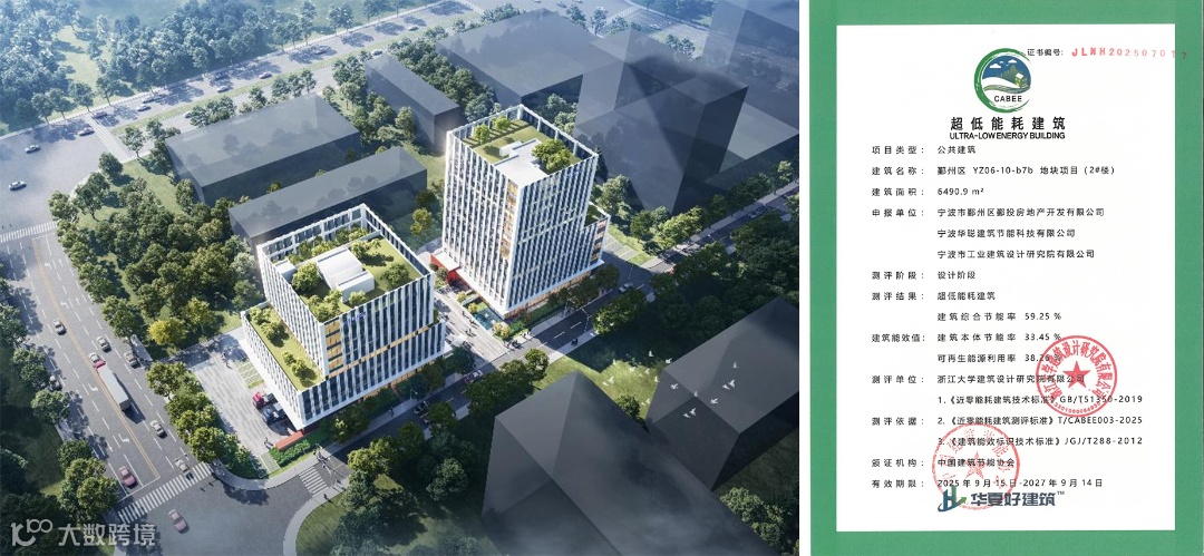 项目地块位于鄞州区中河街道,东、南至用地红线,西至科技支路,北至规划堇山东路。地块内2#楼按照超低能耗建筑的要求进行设计和建设,为办公建筑,建成后主要功能为办公用房、检测用房、会议室、员工活动等。超低能耗总建筑面积6490.90平方米。