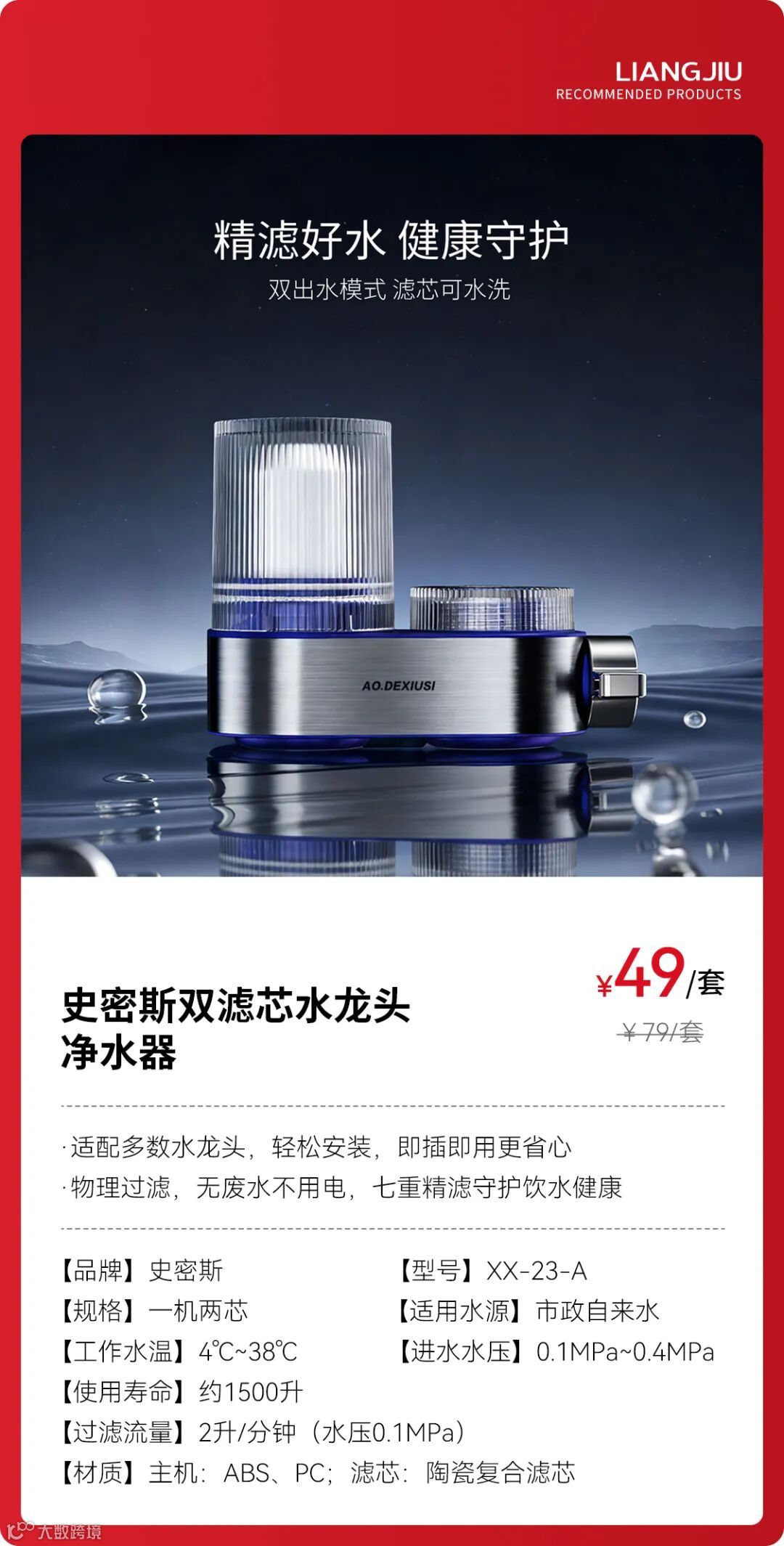 ·物理过滤,无废水不用电,七重精滤守护饮水健康