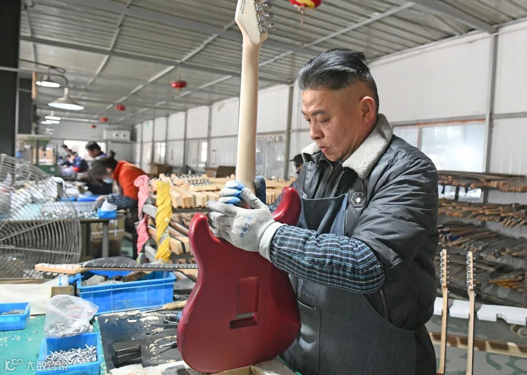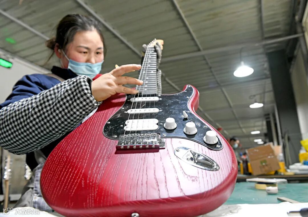 淮南跨境电商数字贸易产业园2026年1月14日,安徽省淮南市乐森黑马乐器有限公司工人正加紧生产电吉他、电贝司等产品,全力保障出口海外市场的订单交付。作为连续六次入选“国家文化出口重点企业”的行业代表,该企业开年以来持续推进生产线技术改造与数控设备升级,全面提升产能与制造精度。